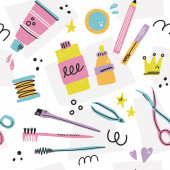 Zestaw różnych narzędzi do brwi. Szczypce, barwniki, szczotki, żele i bo