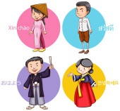 Japoński kostium postać z kreskówki Cute wektor kostium tradycyjny