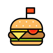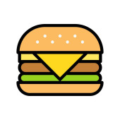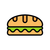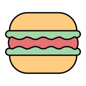 Wektor hamburgera, fast food związane z płaski styl ikona