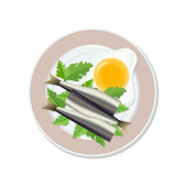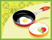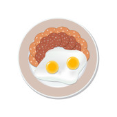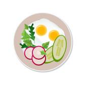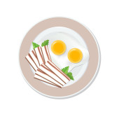 Jajko smażone, krojone ogórki i kiełbasa na talerzu, izolowane na białym tle. Reklamy spo? ywcze s? u? ywane do menu, internetu, reklamy. Wektor