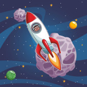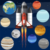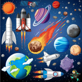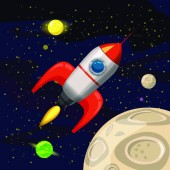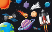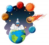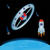 Konstrukcja tła ze statkiem kosmicznym latającym na niebie