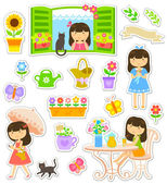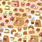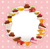 Cute żywności clipart zestaw z dziewcząt, słodycze, ciasta, filiżanki i ozdoby koronki