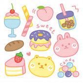 Zdjęcie "Cute żywności clipart zestaw z dziewcząt, słodycze, ciasta, filiżanki i ozdoby koronki" może być wykorzystywane do celów osobistych i komercyjnych zgodnie z warunkami zakupionej licencji Royalty-free. Obraz jest dostępny do pobrania w jakości wysokiej rozdzielczości do 5760x3840.