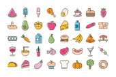 Izolowana linia żywności i wypełnić styl ikona zestaw wektor projekt