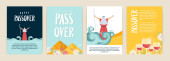 Pascha powitalny zestaw samochodowy. Zaproszenie Seder pesach, szablon kartki okolicznościowej lub ulotki wakacyjnej. Szczęśliwej Paschy w języku angielskim i hebrajskim.