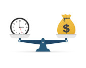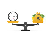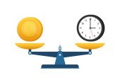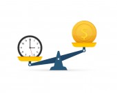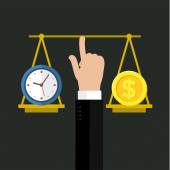Czas to pieniądz na ikonę wagi. Pieniądze i bilans czasu w skali. Ilustracja wektora
