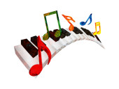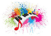 fortepian falisty granicy z 3d kolorowe klawisze i muzyka notatka