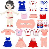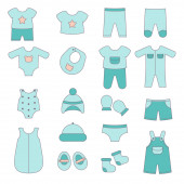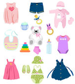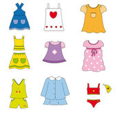 Zestaw cute ubrania dla dziewczynki tym sukienki, koszule, buty. Ilustracja wektora.