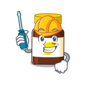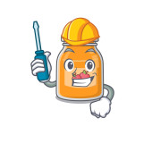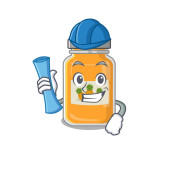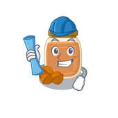 Sukces brzoskwiniowego dżemu Architekt z niebieskimi odciskami i niebieskim hełmem. Ilustracja wektora