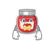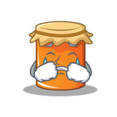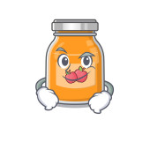 Koncepcja postaci z kreskówki brzoskwinia dżem ze smutną twarzą. Ilustracja wektora