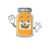 sprytny dżem brzoskwiniowy styl postać z kreskówki mają gest pomysł. Ilustracja wektora