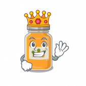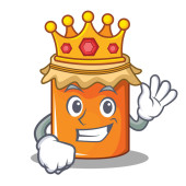 Kreskówkowy projekt maskotki brzoskwiniowego dżemu wykonywany jako Król na scenie. Ilustracja wektora