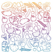 Zdjęcie "Wektor wzór z zdrowej żywności. Owoce i warzywa. Mleko, produkty mleczne. Wzór do sklepu, centrum handlowe, menu, kawiarnia, Restauracje." może być wykorzystywane do celów osobistych i komercyjnych zgodnie z warunkami zakupionej licencji Royalty-free. Obraz jest dostępny do pobrania w jakości wysokiej rozdzielczości do 5760x3840.