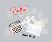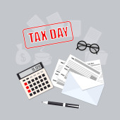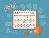 Zdjęcie "Strona kalendarza spiralnego kwiecień 2020 r., przeszukiwanie 15., z lupą i formularzami podatkowymi. Koncepcja biznesowa płaski wektor ilustracja na dzień podatkowy USA z ikonami biznesu na niebieskim tle. eps 10" może być wykorzystywane do celów osobistych i komercyjnych zgodnie z warunkami zakupionej licencji Royalty-free. Obraz jest dostępny do pobrania w jakości wysokiej rozdzielczości do 5760x3840.