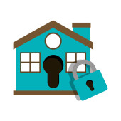 Isolated padlock inside house line and fill style icon vector design