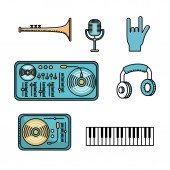 muzyka melodia dźwięk ikony zestaw sylwetka styl ikona