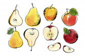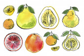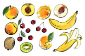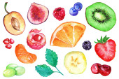 Zdjęcie "Owoce. Rysunek farb żywnościowych. Ananas, granat, jabłko, limonka, kiwi, banan, cytryna, wiśnia, malinowy akwarela rysunek na białym tle. " może być wykorzystywane do celów osobistych i komercyjnych zgodnie z warunkami zakupionej licencji Royalty-free. Obraz jest dostępny do pobrania w jakości wysokiej rozdzielczości do 5760x3840.