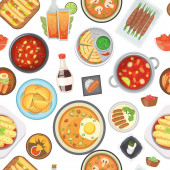 Chińskie jedzenie, azjatycka ulica i restauracja dania kuchni semless wzór wektor kreskówki ilustracja.