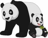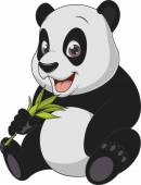 Cute śmieszne małe panda dziecko siedzi uśmiechnięty na białym tle