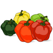 Papryka wielobarwna, ilustracja, wektor na białym tle.