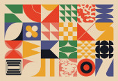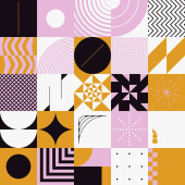 Zdjęcie "Neo Modernizm wzór graficzny wykonany z abstrakcyjnych wektorowych kształtów geometrycznych i form. Prosty wzór graficzny pogrubionej formy, przydatny do sztuki internetowej, kart zaproszeniowych, plakatów, nadruków, tekstyliów, tła." może być wykorzystywane do celów osobistych i komercyjnych zgodnie z warunkami zakupionej licencji Royalty-free. Obraz jest dostępny do pobrania w jakości wysokiej rozdzielczości do 5760x3840.