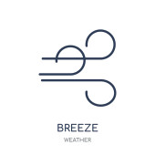 Wiatr zarys ikony wektora. Cienka linia czarna ikona bryza, płaski wektor prosty element ilustracja z edycji koncepcji pogody pojedynczy skok na białym tle
