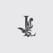 Zarys Litera L Monogram Początkowy Logo Ikona, Prosty luksusowy wektor koncepcji abstrakcyjny natura kwiat kwiatowy z liściem.
