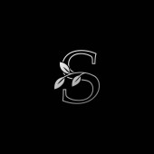 Zarys Litera S Monogram Początkowy Logo Ikona, Prosty luksusowy wektor projekt koncepcja abstrakcyjny natura kwiat kwiatowy z liściem.