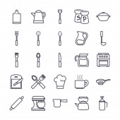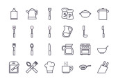 Odizolowane kuchnia i gotować gradientowy styl ikona zestaw wektor projektu
