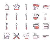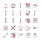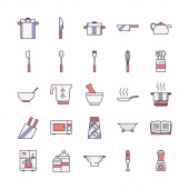 Izolowane kuchnia i gotować linii i wypełnić styl ikona zestaw wektor projektu