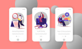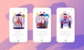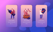 Ludzie Gotowanie Hot Spicy Food Mobile App Page Szablon ekranu pokładowego. Malutkie znaki gotować pyszny posiłek z Red Chili Pepper Składniki, Meksykańskie pikantne danie. Koncepcja. Ilustracja wektora kreskówek
