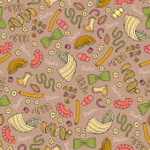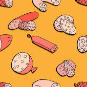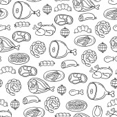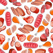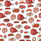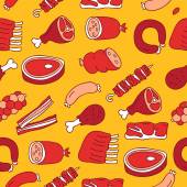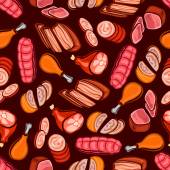 Wektor kolorowy wzór na temat żywności. Tło z izolowanym mięsem, kiełbasą, kurczakiem, wieprzowiną, wołowiną na białym kolorze