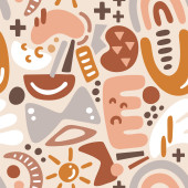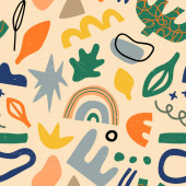 Płynny wzór z kolorowymi ręcznie rysowane kształty organiczne, linie, bazgroły i elementy.Formy naturalne.Vector modny design idealny do druku, ulotki, banery, tkaniny, zaproszenia, marki, okładki i więcej.
