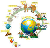 Schematyczna ilustracja cyklu dwutlenku węgla w przyrodzie.