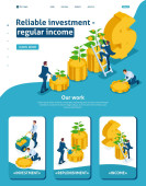 Isometryczny dochód z inwestycji, biznesmeni zbierają zyski i reinwestują pieniądze. Koncepcje lądowania i projektowanie stron internetowych