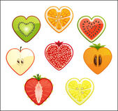 cięcie differend owoce i jagody w kształcie serca. wektor.