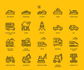Ikony transportu lądowego, widok z boku, koncepcja Monoline. Ikony zostały stworzone na rozdzielczości 48x48 pikseli, idealnie dopasowanej do siatki, zapewniając czysty i wyrazisty wygląd. Regulowana masa skoku.