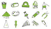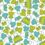 Zestaw artykułów spożywczych i sportowych ikony bazgrołów. Płynny wzór. Ilustracja wektora