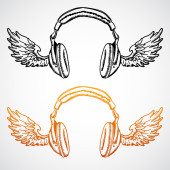 Rock heavy metal, hard rock muzyka symbol słuchawki. Ikona wektora.