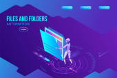 Zdjęcie "Składana koncepcja izometryczna telefonu z osobami korzystającymi z elastycznego smartfona, postacie z kreskówek z futurystycznymi gadżetami, kompozycja niebiesko-żółta, ilustracja wektora 3D" może być wykorzystywane do celów osobistych i komercyjnych zgodnie z warunkami zakupionej licencji Royalty-free. Obraz jest dostępny do pobrania w jakości wysokiej rozdzielczości do 5760x3840.