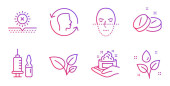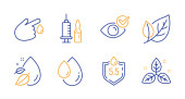 Zdjęcie "Szczepienie medyczne, krople wody i objawy krwiodawstwa. Kropla oleju, neutralne Ph i sprawdzić ikony linii oka zestaw. Liść, symbole sprawiedliwego handlu. Serum, woda. Zestaw do opieki zdrowotnej. Ikony zarysu ustawione. Wektor" może być wykorzystywane do celów osobistych i komercyjnych zgodnie z warunkami zakupionej licencji Royalty-free. Obraz jest dostępny do pobrania w jakości wysokiej rozdzielczości do 5760x3840.