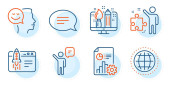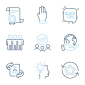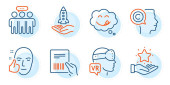 Zdjęcie "Startup, Ochronę twarzy i poprawne znaki checkbox. Trzymaj serce, uśmiech i ludzie gadający ikony ustawione. Polowanie na głowy, symbole schematów ustawień. Pielęgnacja, opinie na laptopie. Ludzie gotowi. Wektor" może być wykorzystywane do celów osobistych i komercyjnych zgodnie z warunkami zakupionej licencji Royalty-free. Obraz jest dostępny do pobrania w jakości wysokiej rozdzielczości do 5760x3840.