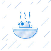 Niebieska linia Zaprawa i ikona tłuczka izolowane na białym tle. Ilustracja wektora