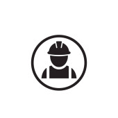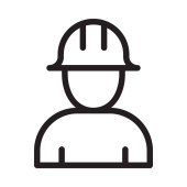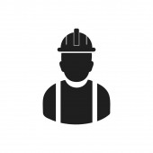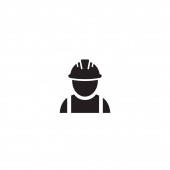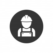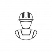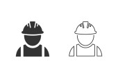 Pracownik budowlany wektor linii ikona na biały nowoczesny styl płaski