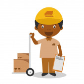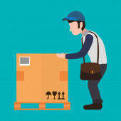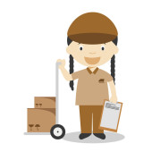 Cute wektor kreskówek ilustracja kuriera z maską chirurgiczną i rękawice lateksowe jako ochrona przed stanem zagrożenia zdrowia