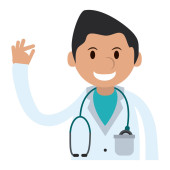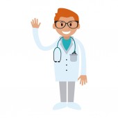 Cute wektor kreskówek ilustracja lekarza z maską chirurgiczną i rękawice lateksowe jako ochrona przed stanem zagrożenia zdrowia