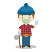 Cute wektor kreskówek ilustracja rolnika w masce chirurgicznej i rękawice lateksowe jako ochrona przed stanem zagrożenia zdrowia