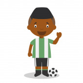 Cute wektor kreskówek ilustracja piłkarz z maską chirurgiczną i rękawice lateksowe jako ochrona przed stanem zagrożenia zdrowia