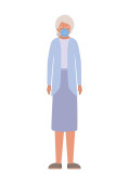 Cute wektor kreskówek ilustracja bibliotekarza z maską chirurgiczną i rękawice lateksowe jako ochrona przed stanem zagrożenia zdrowia