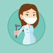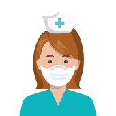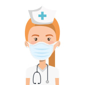Cute wektor kreskówki ilustracja pielęgniarki z maską chirurgiczną i rękawice lateksowe jako ochrona przed stanem zagrożenia zdrowia